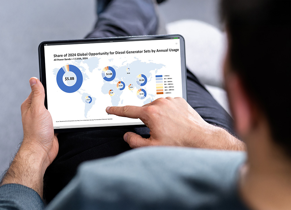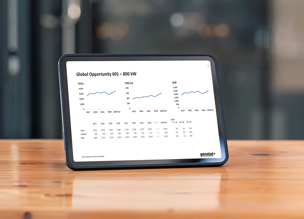 Genstat+ analyzes the industry for diesel and natural gas-powered generator sets by up to 12 power bands:
